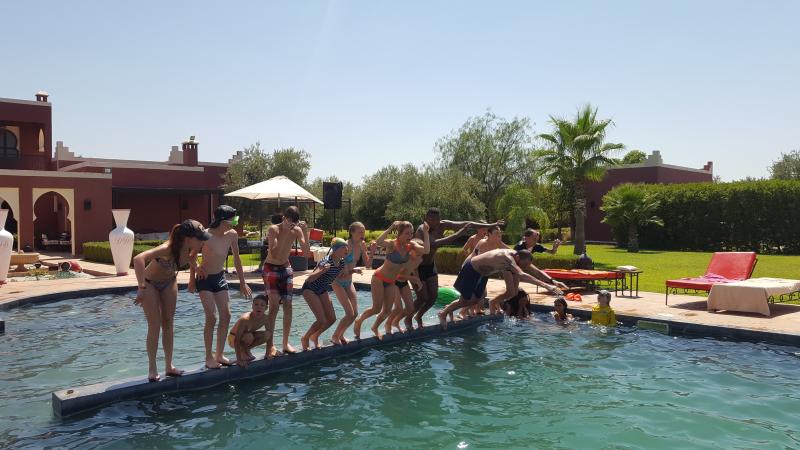 In het kort kan ik vertellen dat de reis uitstekend verlopen is en dat de jongeren, hun begeleidingsteam en ikzelf er superenthousiast over zijn. Het domein is geweldig goed onderhouden, het zwembad is echt de max. We kregen ook op een wakeboard-excursie aangeboden. Het wakeboarden was erg geslaagd en zowel de jongeren als hun begeleiders vonden het fantastisch. Ook hebben we een dromedarisritje mogen maken en hebben we een bezoek gebracht aan het boomklimpark. Ook die activiteiten waren een groot succes. Het deed ons groot plezier om de jongeren zo gelukkig te zien! Wat het domein zelf betreft, ook dat was uit de kunst: heel schoon, ook de kamers, lekker eten en het heeft ons aan niets ontbroken. We zijn jullie heel dankbaar dat we dit met onze jongeren hebben mogen beleven.